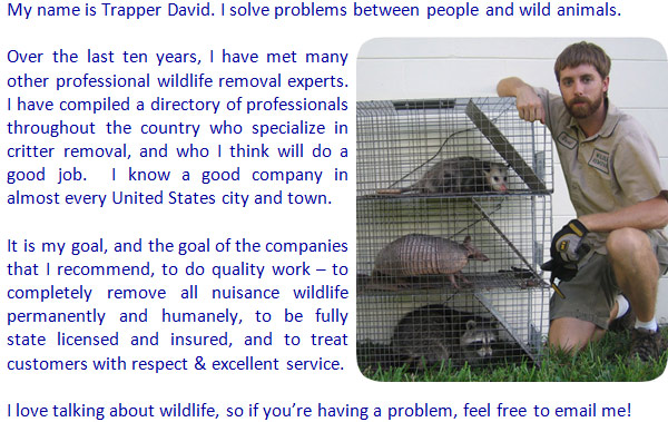 © 2003-2011     Website content & photos by Trapper David     Email questions: david@wildlife-removal.com